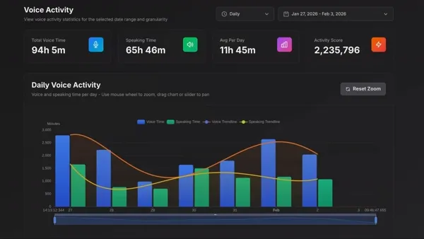 Monitor which voice channels drive the most engagement.
